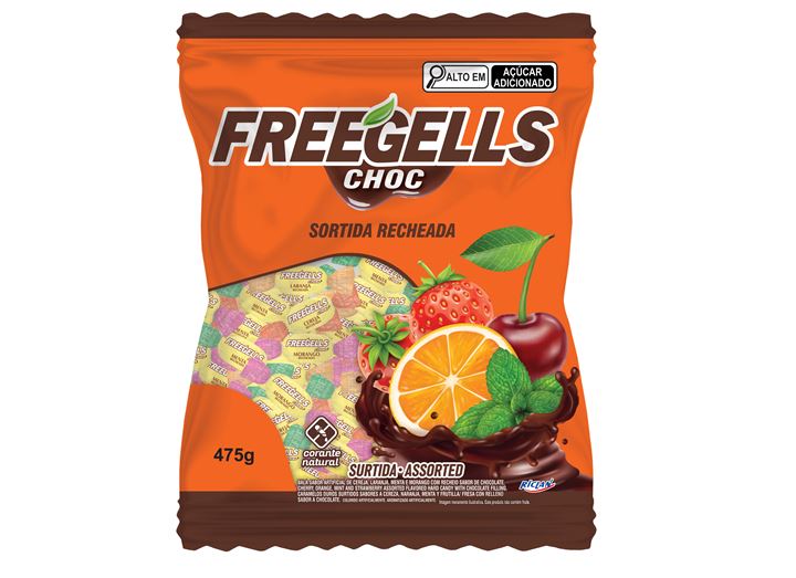 Bala Freegells Recheada Chocolate Sortida 475g
