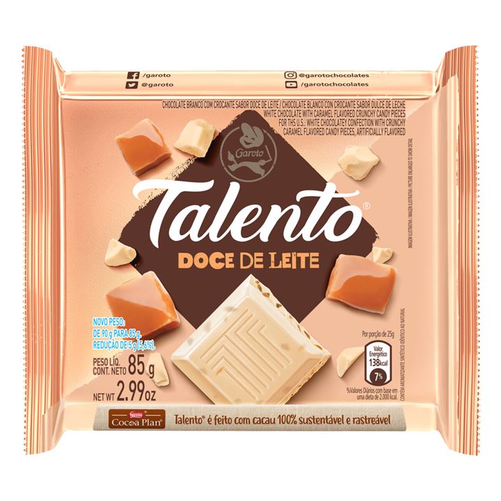 Chocolate Talento Doce De Leite 85g