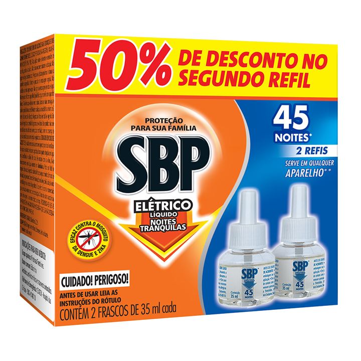 Inseticida Sbp Eletrico Liquido 45 Noites Refil 2un 35ml