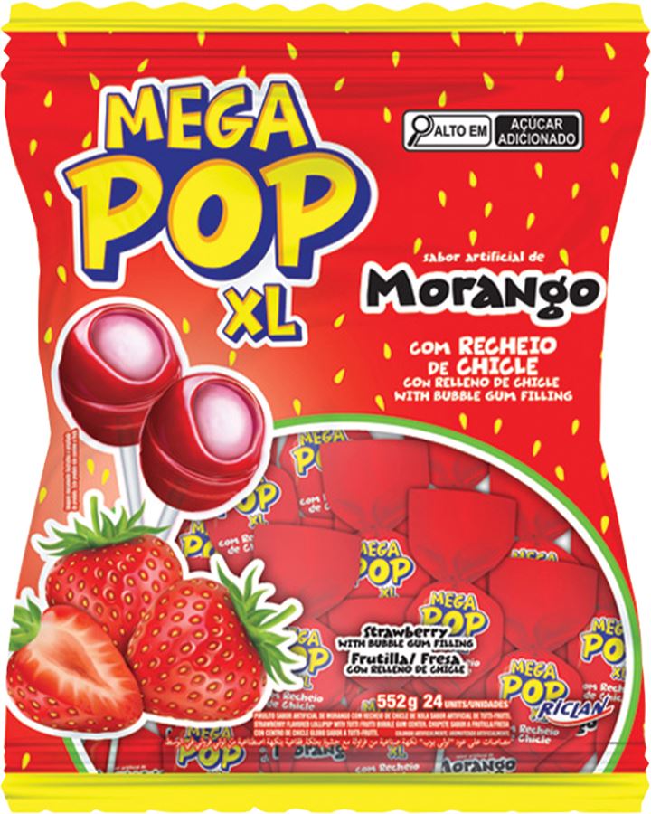 Pirulito Mega Pop Morango 552g
