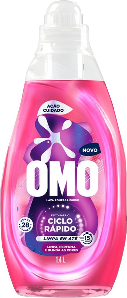 Sabao Liquido Omo Ciclo Rapido Acao Cuidado Rosa 1,4l