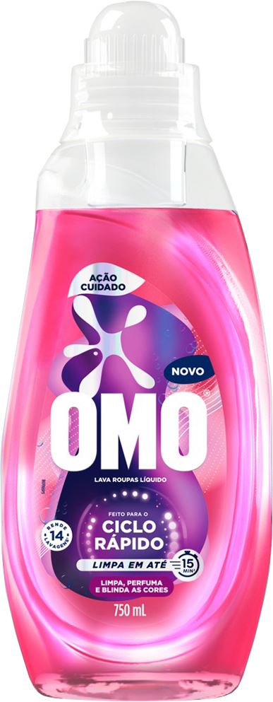 Sabao Liquido Omo Ciclo Rapido Acao Cuidado Rosa 750ml