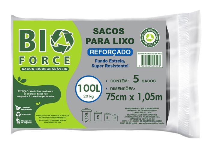 Saco De Lixo Bio Force Preto 100l 5un