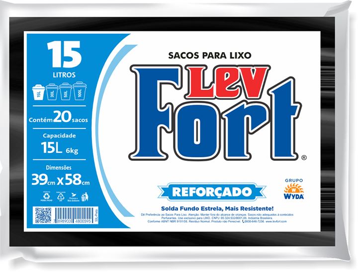 Saco De Lixo Levfort Preto 15l 20un