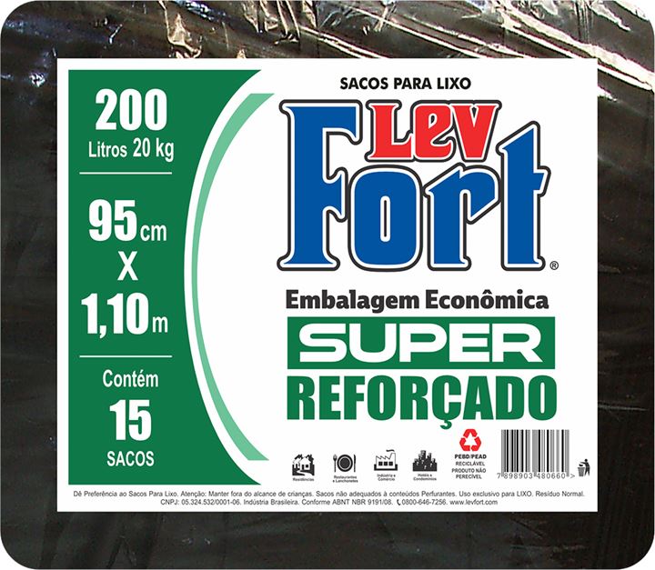 Saco De Lixo Levfort Preto Reforcado 200l 15un